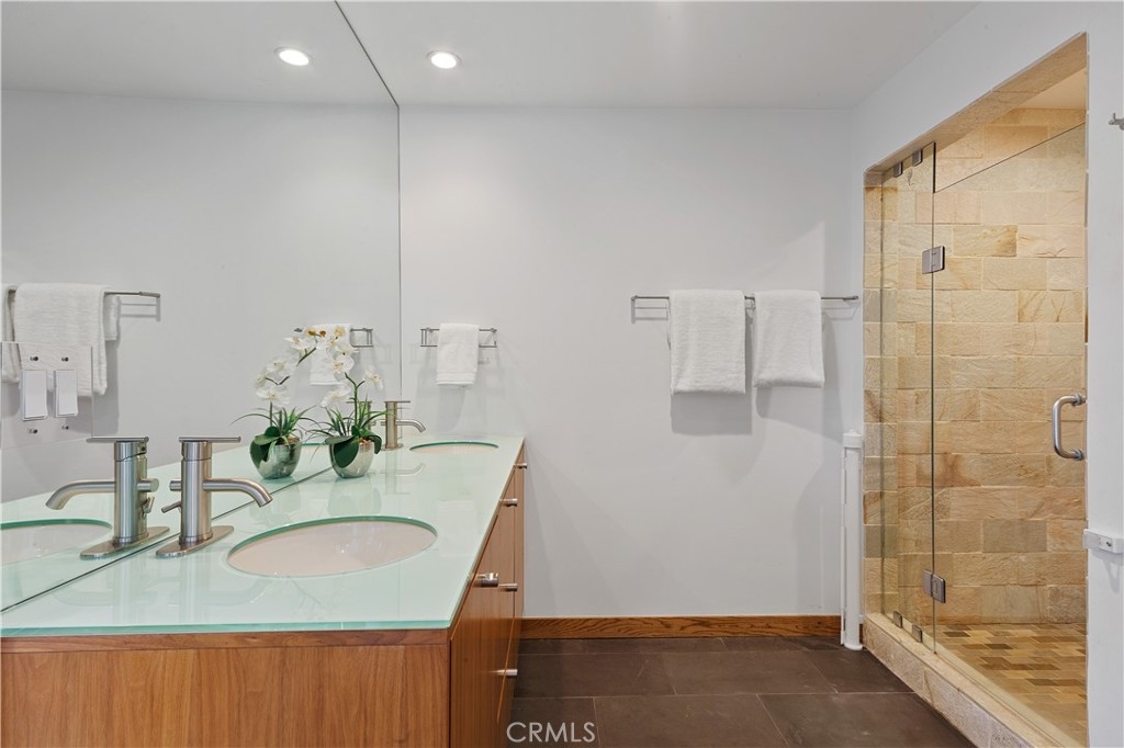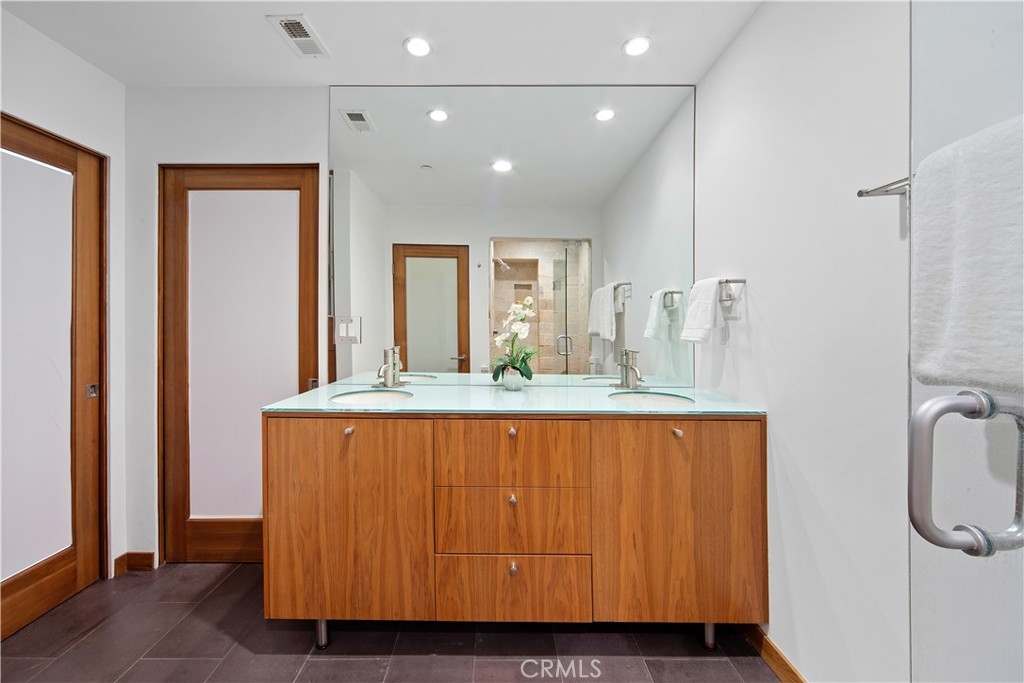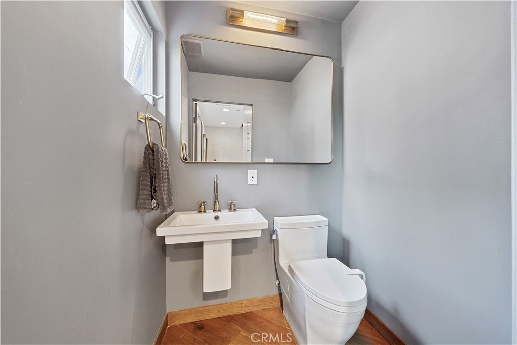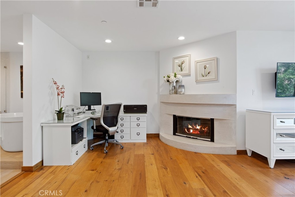 Welcome to this stunning architectural, end unit townhouse located a few short blocks from Abbot Kinney, Rose, Main St. and the beach. Tucked away on a quiet residential street, this masterpiece is just far enough away from any of the noise and traffic that may come from living near these popular destinations. As you enter the home through the rain glass front door on the main level, notice the 8” wide oak plank wood floors that extend throughout and a swanky dining room on the right. This private and versatile room has a modern glass, roll up door that opens to a private patio for the ultimate indoor/outdoor vibe. Utilize this space as a dining room, playroom, home office, gym or however you see fit. The open layout on the main floor is complete with a tastefully remodeled powder room, large, black framed windows that include top-of-the-line designer window treatments and a beautiful fireplace with a smooth concrete surround and mantle. The kitchen has been finished with custom walnut cabinetry, built-in Viking appliances, a full marble slab backsplash, waterfall style quartz counters and roll-out pantry drawers. Upstairs is the enormous master suite, laundry closet and two additional bedrooms that share a jack and jill bathroom with a private water closet. The unforgettable master suite features another fireplace, a balcony, enough room for your Peloton and even another home office or sitting area. The master bathroom was recently remodeled - enjoy the marble slab shower with a regular shower head, rain shower head and hand wand, a new floating vanity with dual sinks and a Duravit whirlpool tub. The custom closet system inside the large walk-in closet will delight you! Other notable features include: Nest thermostat with two zone A/C and heat, LED recessed lighting, pre-wired for internet, video and existing alarm, Ring doorbell, Toto toilets and sleek cable stair railings. This gated 6 unit community has controlled access and a lush, well-kept courtyard with BBQ, dining area and outdoor fireplace. There is direct and easy access to the private 2 car garage and plenty of guest parking available. You will not want to miss it!