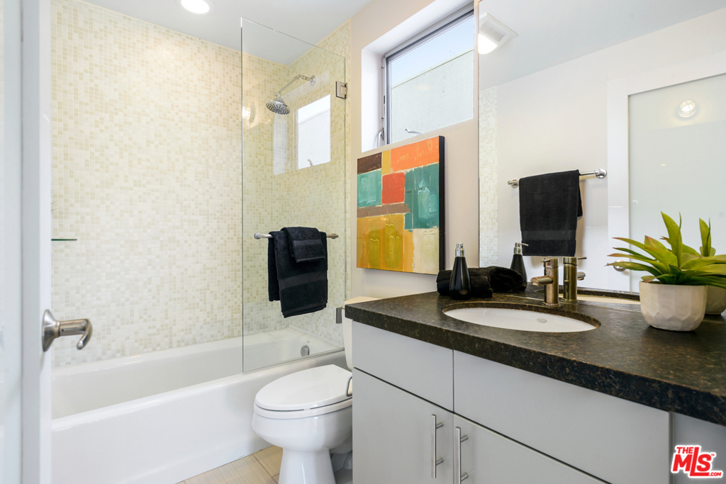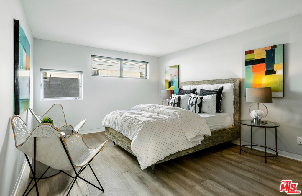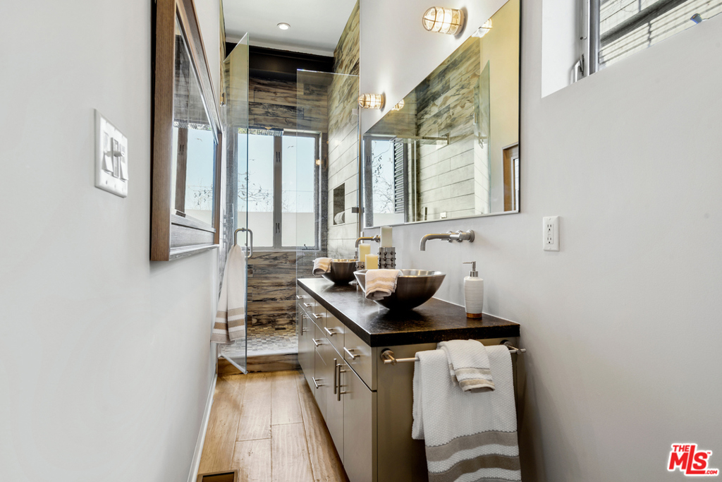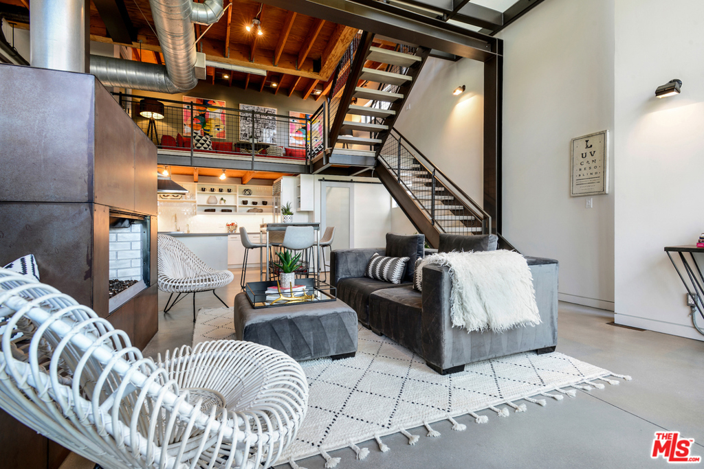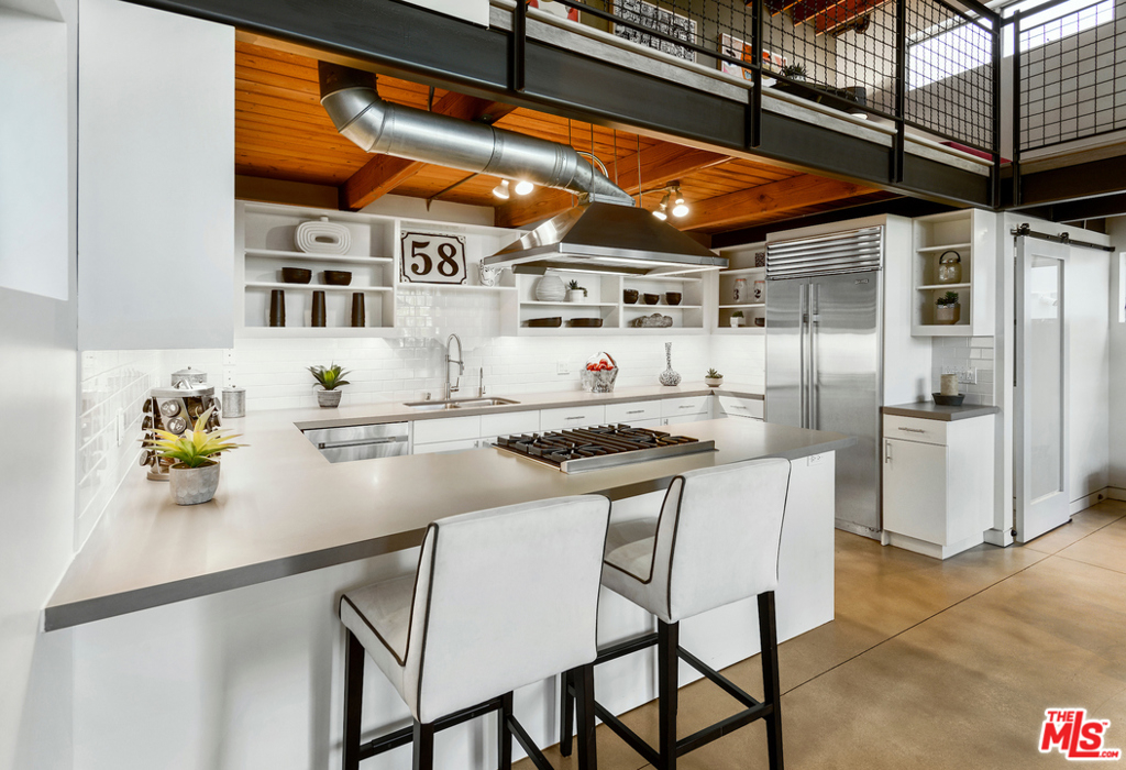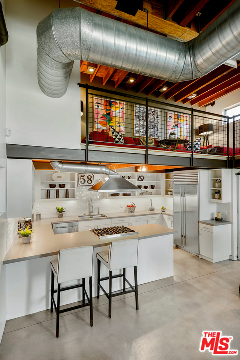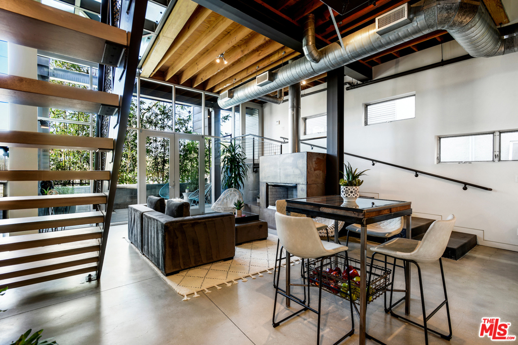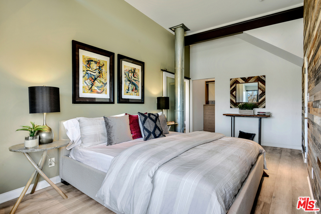 This dramatic urban "canal loft" home (only one and a half blocks to the beach and adjacent to Venice canals) offers designer finishes and quality craftsmanship throughout. A private deck entry hidden by a wall of bamboo opens to the living-dining great room that features a distinctive fireplace. Impressive 14 ft. ceilings and steel-framed windows and doors distinguish the home's architectural uniqueness which merges reclaimed wood, walls of glass, and polished concrete floors. A gourmet kitchen features Viking and Sub-Zero stainless appliances, Caesarstone counters and breakfast bar. A floating stairway leads to upper levels where the loft can serve as office or den. A cozy master suite features a wall of reclaimed wood, generous walk-in closet and master bath with rain-waterfall shower. Abundant natural sunlight. The spacious rooftop deck offers city lights, mountain, canal and peek-a-boo ocean views perfect for entertaining friends and family. Private two-car garage + guest parking.