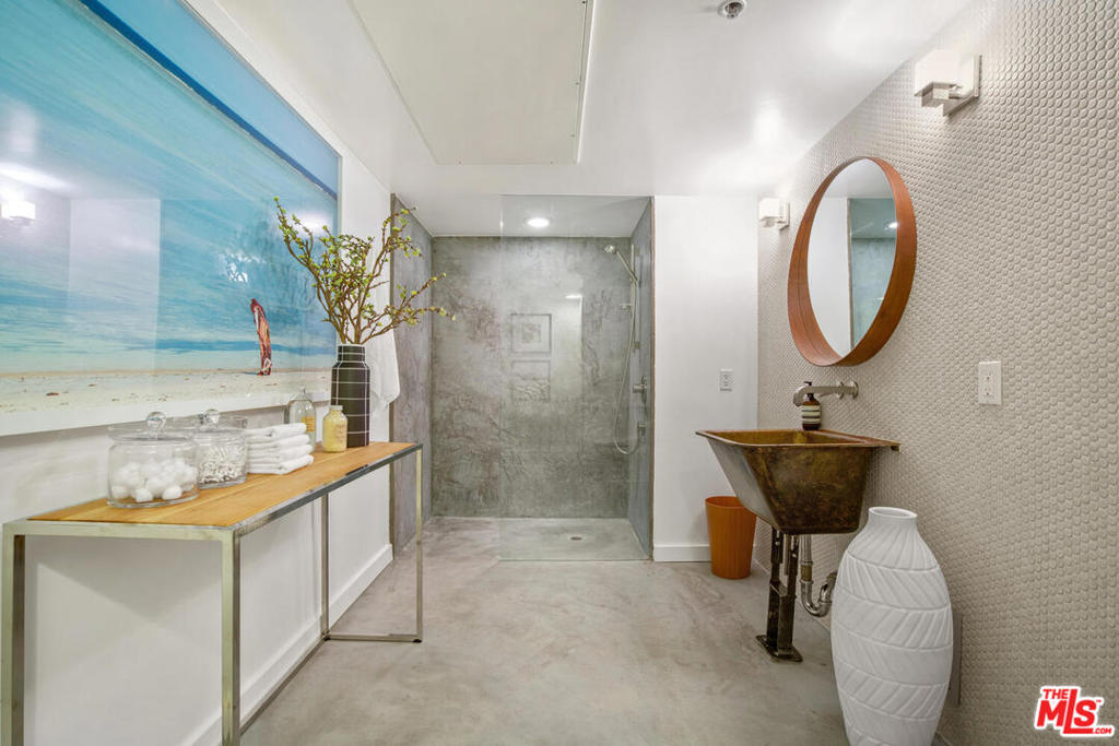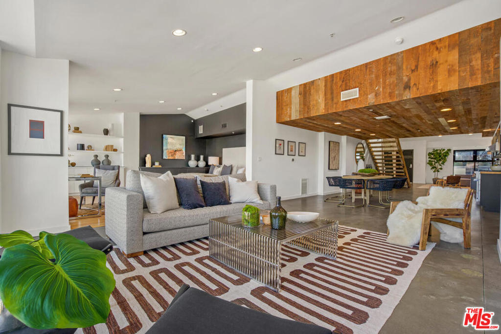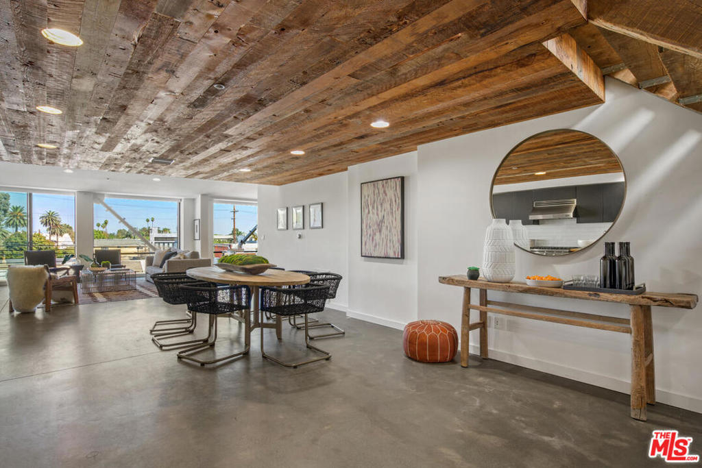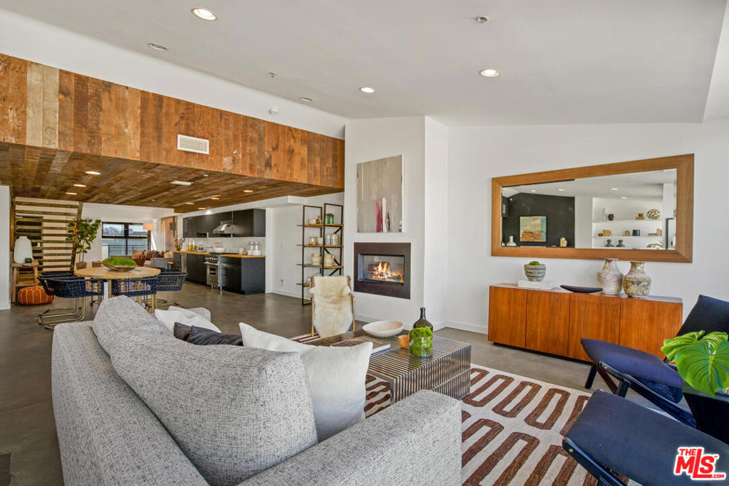 The ultimate Venice lifestyle in this prime top-floor Dogtown Station live/work loft. Just the right blend of stylish design and function, with spacious open floorplan featuring high-ceilings, polished concrete and hardwood floors, and a cool kitchen with Viking appliances and reclaimed wood ceiling. The floor to ceiling wall of windows maximizes natural light while also allowing for privacy and gorgeous eastern views of palm trees and the distant mountains. A floating stairwell leads to a rooftop space - perfect for stargazing or morning yoga. Fireplace, built-ins, impeccable taste and quality, flexible floorplan, and a great vibe! Incredible location, just two blocks to the beach and a short stroll to the restaurants and shops on Rose or Abbot Kinney. Secure building with 2 side-by-side parking spaces and plus visitor parking.