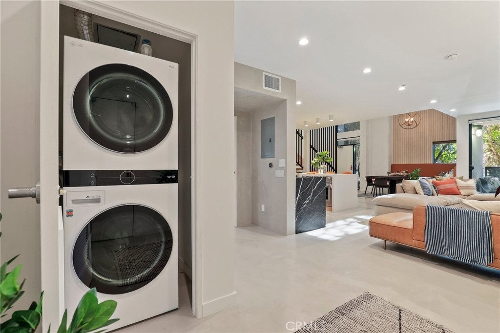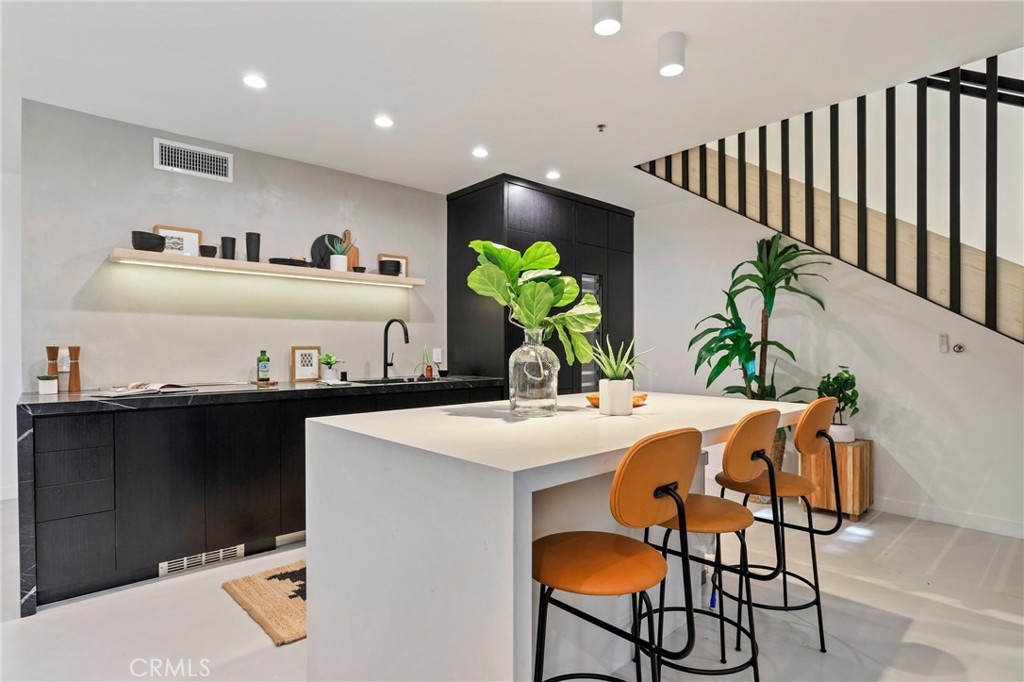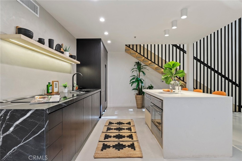 Proud to introduce this remarkable work/live spacious Venice loft style townhome! Upon entering you immediately experience the chic modern design with up to 18 ft high ceilings, floating stairs and superior aesthetics. The lower level provides an open floor concept with a remodeled kitchen that showcases high end stainless steel Thermador appliances, free standing island with a breakfast bar, 59 bottle climate control refrigerator and laundry. Other special features include polished concrete floors on the bottom floor and all engineered white oak on the top floor, smart thermostat, Nest ring doorbell, central heat and air and blinds that are controlled by remote for the windows. The guest bathroom features a resort style soaking tub and modern accents. Upstairs be amazed with the openness and flex area that allows for a terrific bedroom space, ideal office space, en suite bathroom and the loft benefit of overlooking the lower level. The unit also includes two side by side parking spaces, guest parking and earthquake insurance. One of the biggest joys is being moments away from the Venice Boardwalk, Main Street, Rose Ave and Abbot & Kinney (abundance of shops, restaurants, cafes and hangout locations). Celebrate everything that Venice has to offer by being in the heart of it with this stunning property!!!