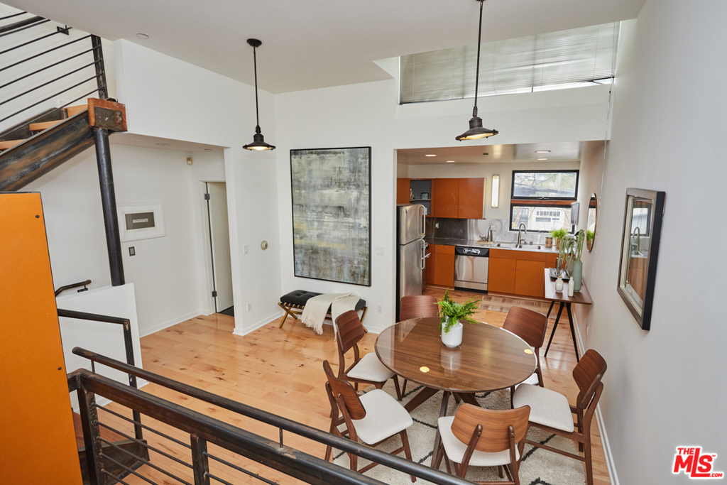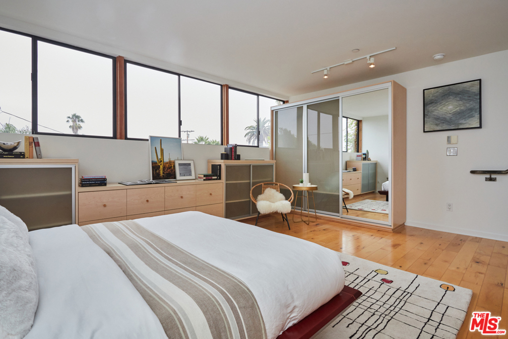 Rare contemporary tri-level loft located in one of Venice's most sought after buildings just a block off of Abbot Kinney. Dramatic, sun-filled architectural live/work space complete with soaring 20 ceilings, polished concrete and wood floors, walls of glass, exposed steel and ample wall space for art. An open floor plan includes a generous living room and office, an open kitchen/dining area with stainless appliances, 2 bathrooms, a spacious bedroom with built-ins leading up to an incredible roof top deck complete with 360 panoramic views. Oversized 2-car direct access garage with laundry area. Very private and quiet home in a truly amazing location close to shops, restaurants and the beach. Live the ultimate Venice lifestyle. Properties rarely come up in this building! Don't miss this very cool spot!