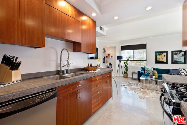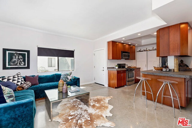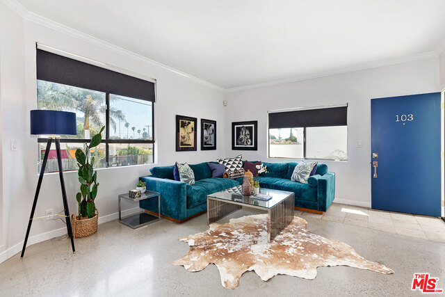 Sleek, updated 2 bedroom condo in prime Venice. Tucked away just off trendy Abbot Kinney, this quiet and bright front corner unit is just moments from all the action. Beautifully remodeled with stained concrete floors, stone countertops, stainless steel appliances, and custom cabinetry featuring ample storage space and high-end finishes throughout. Enjoy sea breezes, stunning sunsets and beautifully sun-drenched spaces with Southern and Western exposures. The master bedroom boasts an en-suite half bath and graciously-proportioned walk-in closet. Two car gated and secure parking, controlled access and recently renovated small, 14-unit building. Close proximity to Washington Blvd. and Abbot Kinney Shopping & Dining, The Venice Pier, Canals & boardwalk, biking paths, and Marina. Inside Washer & Dryer, Central heat & A/C. Welcome Home!