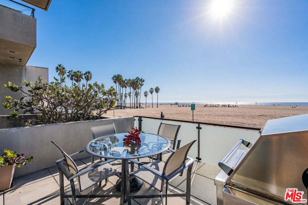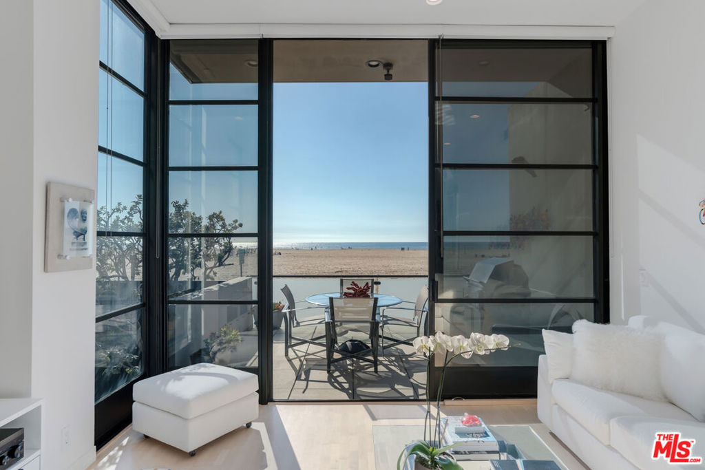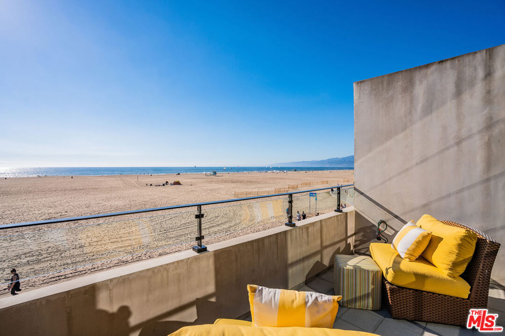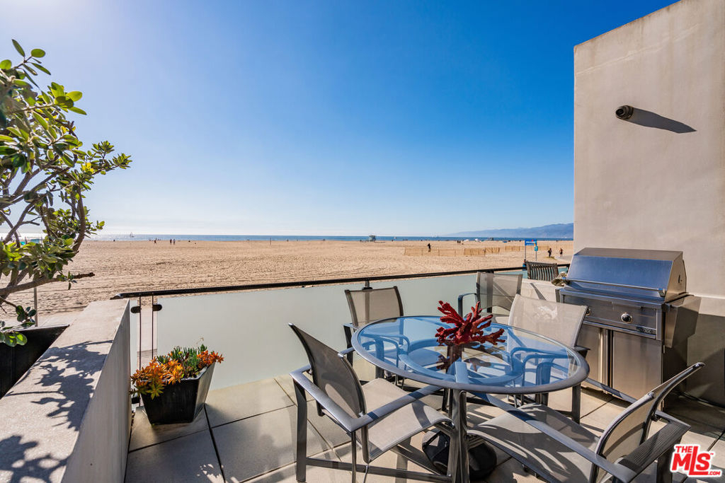 Stunning beach front townhome residence by noted architect L. Anthony Greenberg. Feels like living in a single-family home...but better. Incredible head-on ocean views and tremendous volume and natural light throughout. Dramatic living room with soaring ceilings, fireplace and floor to ceiling sliders that open onto a spacious beachside patio, elevated above the boardwalk. Open concept kitchen, dining and breakfast room all enjoy views of the ocean. The primary bedroom is a retreat onto itself, with private beach-front patio, fireplace, walls of closets and beautiful bath with dual vanities, spa tub and separate shower. There are two additional en-suite bedrooms as well as a den/media room and powder room. Wonderful rooftop deck, shared with neighboring unit, with sweeping coastal views up to Point Dume is an entertainer's dream come true. Additional features include a walk-in kitchen pantry, elite brand appliances, beautiful hardwood floors, new two zone heating and AC, security system, surround sound audio throughout and great wall space for your art! Private two car tandem garage with built-in storage plus an additional dedicated parking spot for a third car in the adjacent motor court. Generously sized laundry room provides for a full-size side by side washer dryer plus additional storage. Securely gated with entry intercom. Located on the Santa Monica/Venice border, in close proximity to the wonderful shops, restaurants, bike path, Main Street and much more. This is a very special opportunity, rarely on the market!