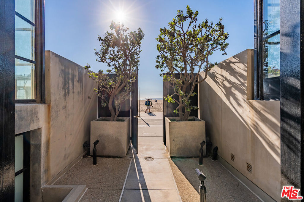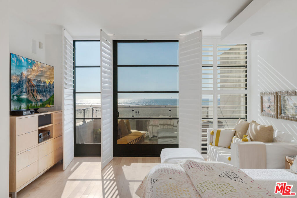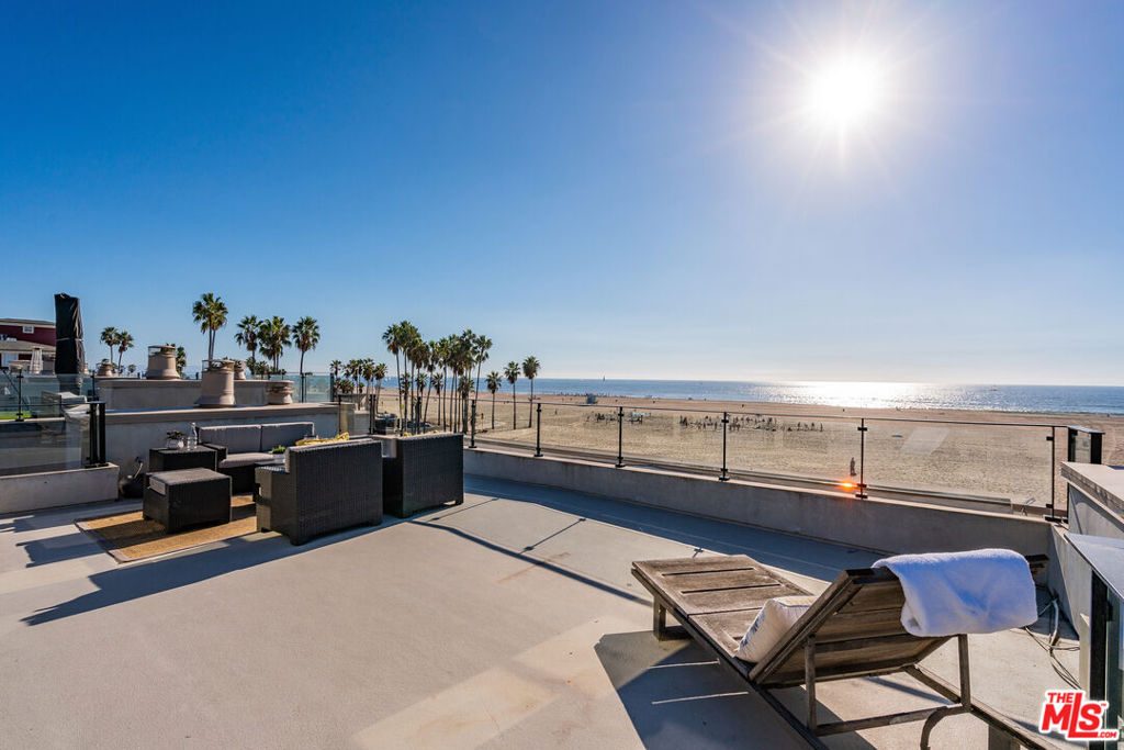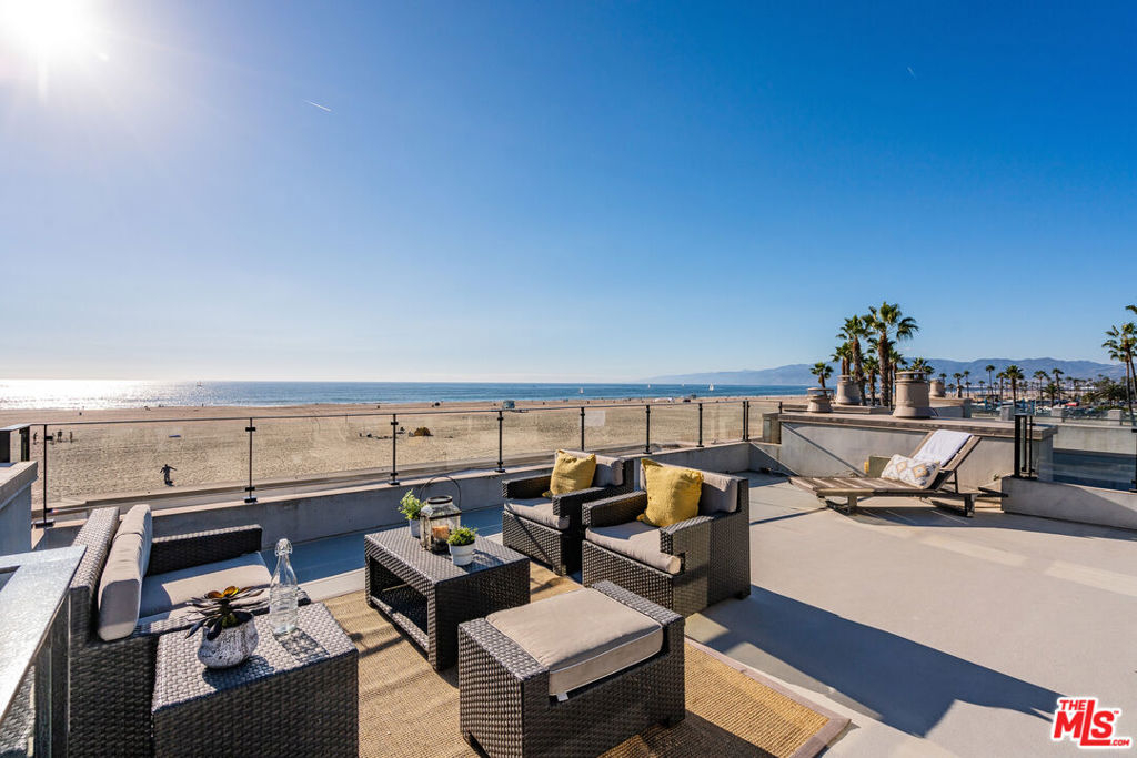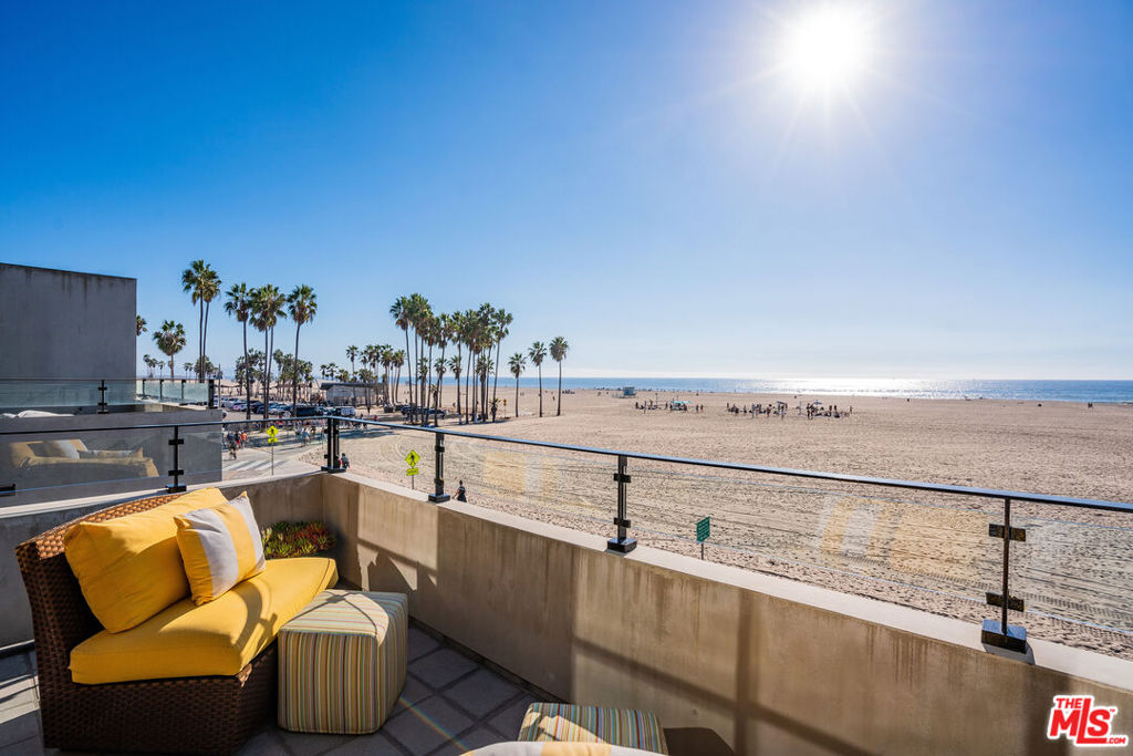 Stunning beach front townhome residence by noted architect L. Anthony Greenberg. Feels like living in a single-family home...but better. Incredible head-on ocean views and tremendous volume and natural light throughout. Dramatic living room with soaring ceilings, fireplace and floor to ceiling sliders that open onto a spacious beachside patio, elevated above the boardwalk. Open concept kitchen, dining and breakfast room all enjoy views of the ocean. The primary bedroom is a retreat onto itself, with private beach-front patio, fireplace, walls of closets and beautiful bath with dual vanities, spa tub and separate shower. There are two additional en-suite bedrooms as well as a den/media room and powder room. Wonderful rooftop deck, shared with neighboring unit, with sweeping coastal views up to Point Dume is an entertainer's dream come true. Additional features include a walk-in kitchen pantry, elite brand appliances, beautiful hardwood floors, new two zone heating and AC, security system, surround sound audio throughout and great wall space for your art! Private two car tandem garage with built-in storage plus an additional dedicated parking spot for a third car in the adjacent motor court. Generously sized laundry room provides for a full-size side by side washer dryer plus additional storage. Securely gated with entry intercom. Located on the Santa Monica/Venice border, in close proximity to the wonderful shops, restaurants, bike path, Main Street and much more. This is a very special opportunity, rarely on the market!