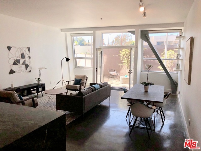 UNDER $1MM in Venice/Silicon Beach! Don't miss this spacious 1/1 in Venice Arts Lofts -- true architectural live/work space built in 2004 in the heart of Venice. Walk to the beach, Main St., Gold's Gym, Abbot Kinney and Rose Ave. This first-level, north-facing unit has 10 ft. ceilings, lots of natural light polished concrete floors, exposed steel beams, updated all-stainless kitchen w huge marble-topped island w lots of storage. The bedroom has a large walk-in closet and veneer wood cabinetry throughout. Bathroom has custom steam shower and large vanity/dressing area. Private and secured patio to enjoy the cool ocean breezes. Two-car tandem parking with small storage unit at end of parking space.