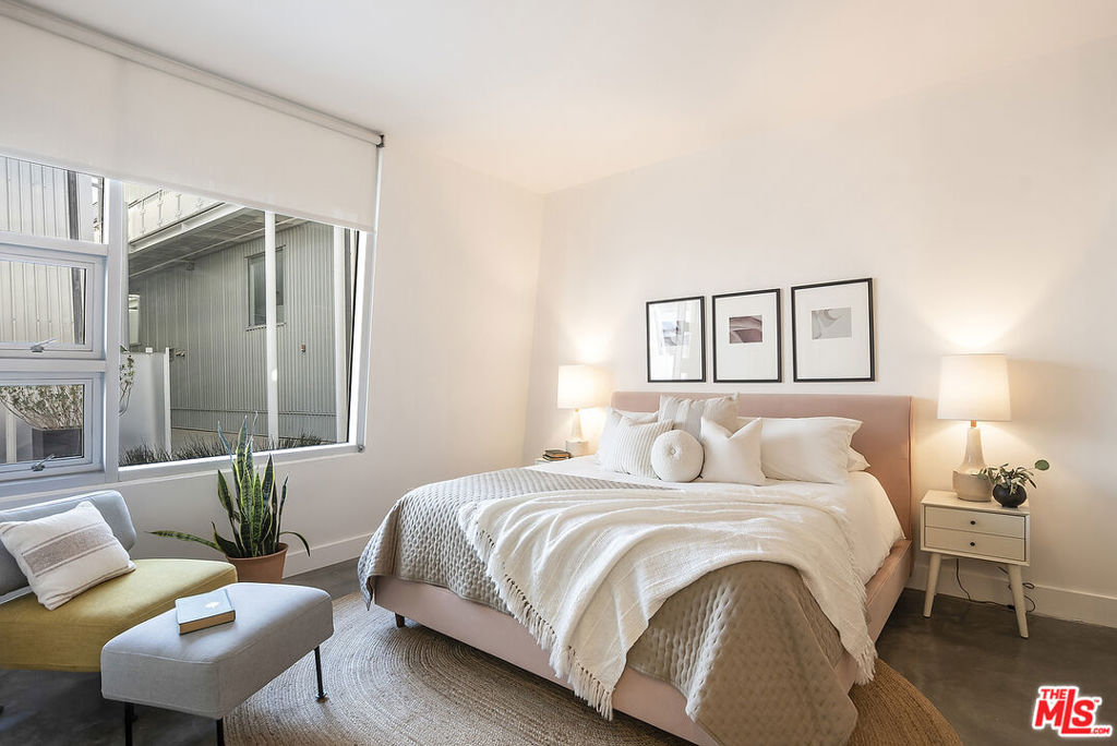 Outstanding loft living awaits in this incredibly hip, industrial-chic 1BD/1BA home at the iconic Venice Art Lofts. Inside the ground-floor residence, sky-high ceilings, poured concrete floors, walls of glass and angled columns amplify the dramatic proportions. A long entry gallery leads to the sun-splashed living area, offering a generous footprint for seating, dining and work areas and an oversized private patio for seamless indoor-outdoor enjoyment. The open kitchen reinforces the contemporary vibe with sleek cabinetry, concrete counters and stainless steel appliances. In the king-size bedroom, discover a wide reach-in closet and a large attached bath featuring a tub/shower, modern vanity and a roomy laundry closet with a stacked washer-dryer. Built in 2004, Venice Art Lofts delivers an unbeatable Venice location just inches from the world-famous beach and boardwalk and outstanding shopping, dining and nightlife along Abbot Kinney and Santa Monica's Main Street.
