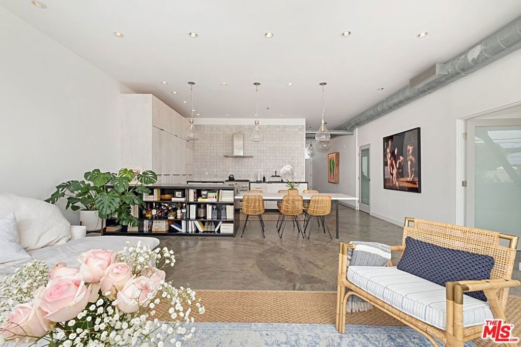 Sophisticated, industrial, architectural design enhanced with luxurious, romantic furnishings and tasteful dcor is a stunning effect. With floor to ceiling windows and cement floors, it has a New York loft-like ambience with the warmth of a cozy London townhouse. A wonderfully inviting blend with a young, cool vibe. Filled with light, the main living area is a large great room, combining a remodeled chefs kitchen, a spacious dining area and a stylish sitting area. It is quite attractive and inviting. The master bedroom is a dreamy retreat with a large closet and a movie-star inspired, glamorous spa-like bath. The second bedroom is nicely separated and also enchanting with a pretty private bath. One must see this wonderful place to experience its delightful charm. Legally permitted as LIVE/WORK space, this is an unusual find in Los Angeles. Walk to Golds Gym, restaurants, shopping, and to the beach. Fully secured building and garage. Must see this one-of-a-kind unit.