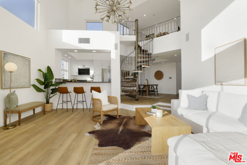 Penthouse Living by the Sea | 2 Bed + Loft | Ocean Views | Prime Venice Location. Welcome to this sophisticated penthouse residence just one block from the beach, nestled in the heart of Venice. This rare corner unit offers 2 bedrooms, 2 bathrooms, plus a versatile loft space perfect for a home office or guest retreat. Completely renovated with brand new engineered luxury vinyl plank flooring, this light-filled home boasts vaulted cathedral ceilings, expansive floor-to-ceiling windows, and an open-concept layout that seamlessly blends comfort and style. The living room fireplace, recessed lighting, and private balcony with ocean views create an inviting space to unwind or entertain. The chef's kitchen features quartz countertops, white shaker soft-close cabinetry, stainless steel appliances, a convection oven, breakfast bar, and a dedicated formal dining area all designed for effortless entertaining. The spacious primary suite offers a walk-in closet and a luxurious en suite bath with dual vanities and a jacuzzi tub. A second full bath, Miele washer/dryer and central HVAC complete the interior. Upstairs, your own private rooftop deck showcases panoramic ocean views, a true sanctuary above the city. Residents enjoy access to resort-style amenities, including a pool, spa, two side-by-side parking spaces, plenty of guest parking, and a private storage unit. Unbeatable location just moments from Abbot Kinney, Rose Ave, and Main Street's shops and restaurants. Coastal elegance and urban convenience converge in this truly exceptional home.