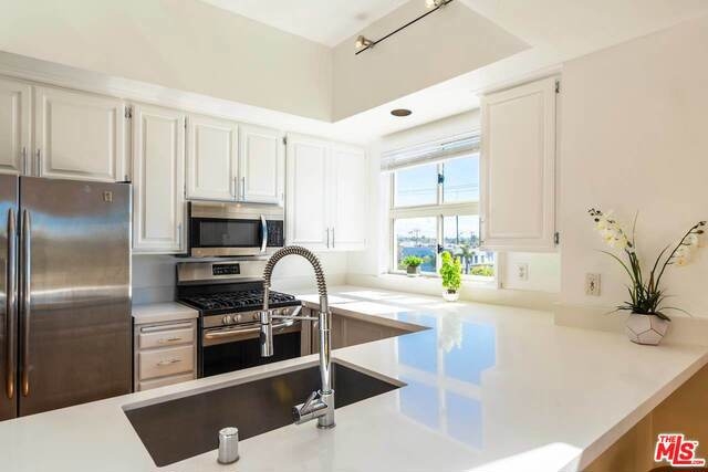 Would you like watching the sunset over the Pacific from your own spacious balcony? Then you have to see this top-floor, corner penthouse w/ mountain, ocean & city views! Located on the corner of Main St and Rose Ave (the heart of LA's burgeoning tech community & just a few blocks from the beach). 1st floor includes a lrg living room w/ vaulted ceilings, lrg windows, corner patio, fireplace & tons of natural light. A spiral staircase leads to a loft that can be used as an office or guest room w/ private rooftop deck w/ views. Patios offer plenty of options to enjoy the sea breezes, morning coffee or evening cocktail. The historic Venice Renaissance building offers great amenities including pool & spa. Includes two side-by-side parking spaces & in-unit laundry. Best of all, you can walk to Main Street and Rose Avenue's shops, cafe's & restaurants. Famed Abbot Kinney Blvd. is a short walk/bike ride away, and you are just blocks to the sand. See private remarks for all showing requests.