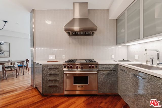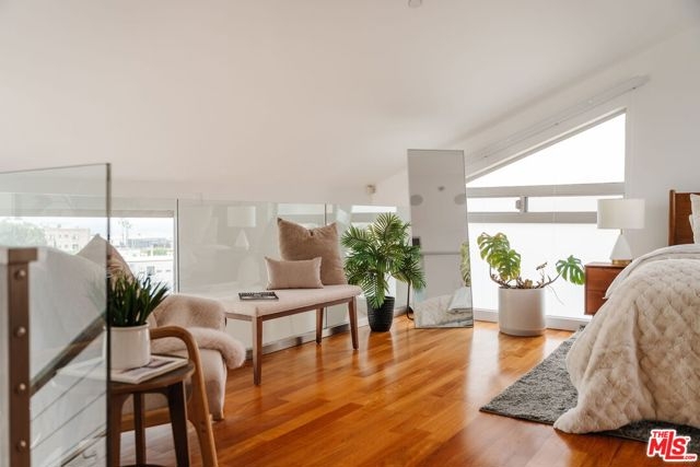 Imagine waking up with the ocean as your backdrop, the horizon stretching endlessly from your top-floor retreat just one block from the sand. Sunlight pours through soaring ceilings and west-facing windows, painting mornings in gold and evenings with unforgettable sunsets. Step onto the balcony with coffee in hand or watch the sky change at dusk with a glass of wine.The open layout blends relaxation and entertaining, with a modern kitchen featuring Sub-Zero refrigerator, wine fridge, Wolf range and Gaggenau steamer. It flows into a living area with contemporary fireplace and projector with surround sound, perfect for movie nights or gatherings. The exposed wood staircase leads to the stunning primary suite, where a steam shower and blackout blinds create a private retreat.Effortless living continues with a second ensuite bedroom, a flex room or third bedroom with balcony, and a rooftop seating area for breezy afternoons or starlit evenings. Smart home features including a Ring camera and security system add peace of mind, while two side-by-side parking spaces and a private storage locker provide convenience.Here, life unfolds at the crossroads of Santa Monica and Venice, steps from Main Street, Abbot Kinney and the beach. Rarely does a home offer this volume, orientation and ocean view. This is not just a condo, but the coastal lifestyle you have been waiting for.