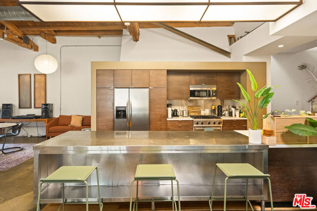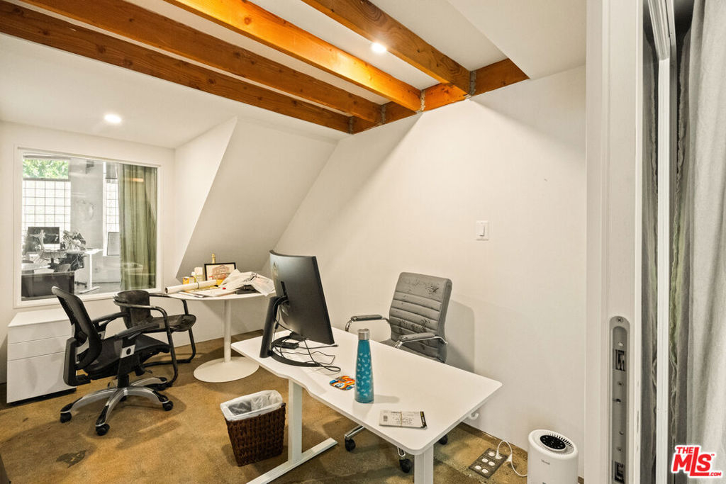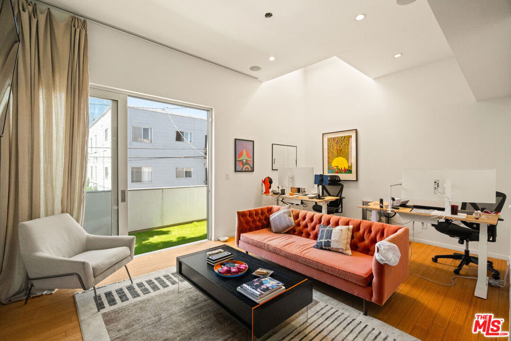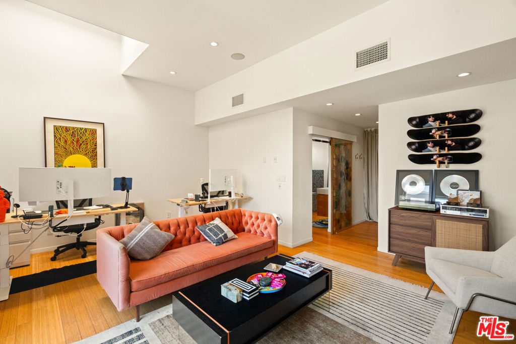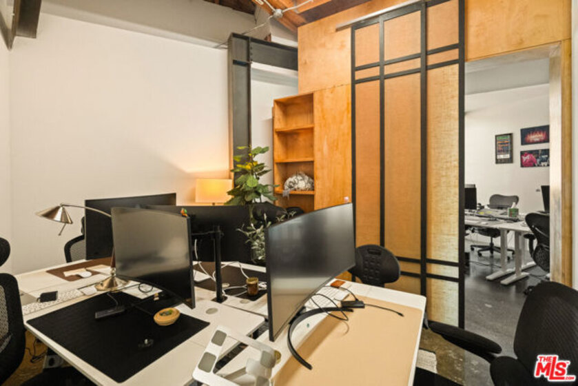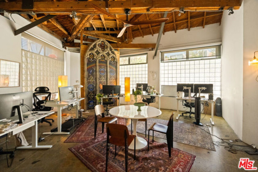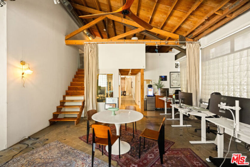 A rare opportunity to own a distinctive piece of Venice history, 120 Mildred is a 4,000-square-foot industrial architectural townhouse within the iconic Vanguard Lofts, originally part of the 1924 warehouse that housed the Venice Vanguard newspaper's printing press. Reimagined through a Danny Kaplan-designed renovation, the residence blends preserved warehouse character with modern live/work architecture, offering scale, volume, and exceptional flexibility in one of Venice's most unique compounds. Currently utilized as an office, the 3-bedroom, 3-bath layout includes an additional six private office spaces and approximately 2,500 square feet of ground-floor space with dramatic 17-foot ceilings. Designed to adapt to a wide range of uses, the property features large studio areas, mezzanine spaces, an open chef's kitchen, and seamless indoor-outdoor flow with private garden and deck spaces. Upstairs, flexible suites and expansive outdoor areas create endless possibilities for a creative office, live/work residence, or both. Exceptionally rare on its own, 120 Mildred also offers the unique opportunity to be combined with the adjacent 3,000-square-foot residence at 122 Mildred, creating a 7,000+ square-foot architectural compound just moments from the beach, Windward Circle, and Abbott Kinney.