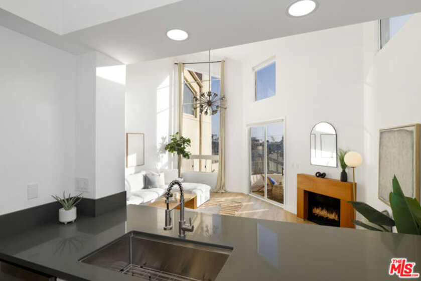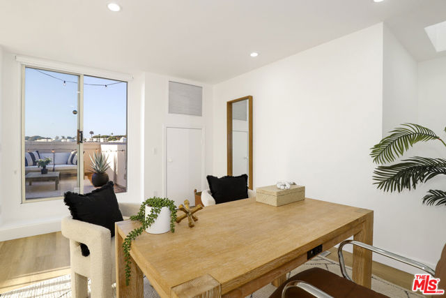 Penthouse Living by the Sea | 2 Bed + Loft | Ocean Views | Prime Venice Location. Welcome to this sophisticated penthouse residence just one block from the beach, nestled in the heart of Venice. This rare corner unit offers 2 bedrooms, 2 bathrooms, plus a versatile loft space perfect for a home office or guest retreat. Completely renovated with brand new engineered luxury vinyl plank flooring, this light-filled home boasts vaulted cathedral ceilings, expansive floor-to-ceiling windows, and an open-concept layout that seamlessly blends comfort and style. The living room fireplace, recessed lighting, and private balcony with ocean views create an inviting space to unwind or entertain. The chef's kitchen features quartz countertops, white shaker soft-close cabinetry, stainless steel appliances, a convection oven, breakfast bar, and a dedicated formal dining area all designed for effortless entertaining. The spacious primary suite offers a walk-in closet and a luxurious en suite bath with dual vanities and a jacuzzi tub. A second full bath, Miele washer/dryer and central HVAC complete the interior. Upstairs, your own private rooftop deck showcases panoramic ocean views, a true sanctuary above the city. Residents enjoy access to resort-style amenities, including a pool, spa, two side-by-side parking spaces, plenty of guest parking, and a private storage unit. Unbeatable location just moments from Abbot Kinney, Rose Ave, and Main Street's shops and restaurants. Coastal elegance and urban convenience converge in this truly exceptional home.