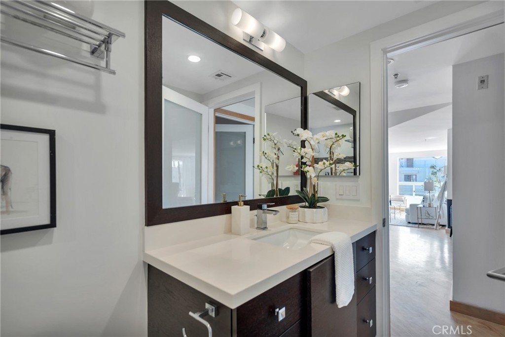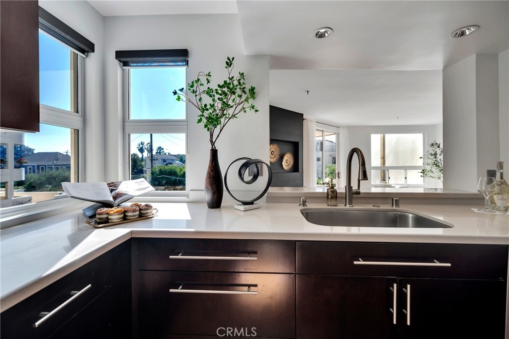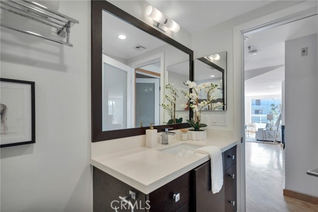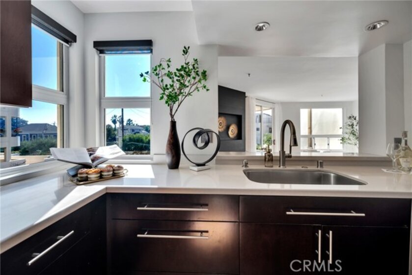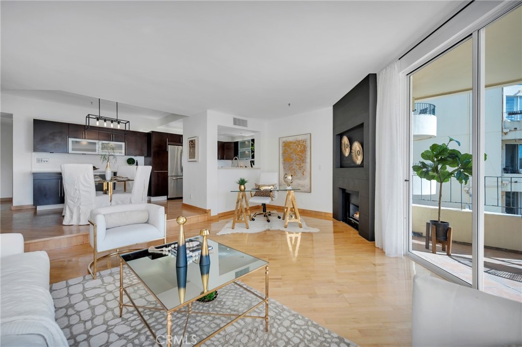 Sophisticated Coastal Living in the Iconic Venice Renaissance Building! Welcome to 245 Main Street Unit 208 in Venice Beach and experience the perfect blend of architectural pedigree, modern design, and beachside tranquility in this beautifully updated residence within the renowned Venice Renaissance Building, designed by Johannes Van Tilburg & Partners. Every detail has been thoughtfully curated, from the sleek, high-end finishes to the seamless flow of natural light that fills the space.The inviting living area centers around a sophisticated fireplace, creating an elegant focal point and a warm ambiance that’s perfect for relaxing evenings or intimate gatherings. From here, step out onto your private balcony to enjoy coastal breezes and al fresco moments. The gourmet kitchen is a chef’s delight, featuring Silestone countertops, stainless steel appliances, and premium fixtures. Built-in lighting along the kitchen and bar area adds a touch of elegance and warmth, highlighting the modern design while creating the perfect atmosphere for entertaining.Both bathrooms have been tastefully renovated with contemporary touches and quality craftsmanship. The primary suite is a serene retreat, complete with its own private balcony and a spa-inspired bathroom featuring dual sinks and a large, elegantly tiled walk-in shower.The guest bedroom doubles as a multifunctional space, showcasing custom-built storage and an Italian-designed queen-size Murphy bed/sofa by Resource Furniture—ideal for hosting guests without sacrificing space or style.Additional highlights include in-unit laundry, two side-by-side parking spaces, and your very own HOA-approved 110-volt outlet in the secured garage—perfect for EV charging. Ample guest parking makes entertaining a breeze. Step outside your door and into the best of Venice living: world-class dining, boutiques, and entertainment on Main Street and Abbot Kinney are just moments away. With a yoga studio, a beauty bar and The Massage Hubs located right downstairs, effortless wellness and indulgence are built into your daily routine.Light, bright, and effortlessly chic—this is modern coastal living at its finest.
