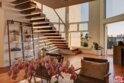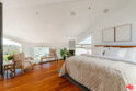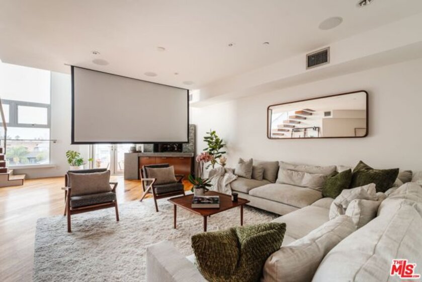 Imagine waking up with the ocean as your backdrop, the horizon stretching endlessly from your top-floor retreat just one block from the sand. Sunlight pours through soaring ceilings and west-facing windows, painting mornings in gold and evenings with unforgettable sunsets. Step onto the balcony with coffee in hand or watch the sky change at dusk with a glass of wine.The open layout blends relaxation and entertaining, with a modern kitchen featuring Sub-Zero refrigerator, wine fridge, Wolf range and Gaggenau steamer. It flows into a living area with contemporary fireplace and projector with surround sound, perfect for movie nights or gatherings. The exposed wood staircase leads to the stunning primary suite, where a steam shower and blackout blinds create a private retreat.Effortless living continues with a second ensuite bedroom, a flex room or third bedroom with balcony, and a rooftop seating area for breezy afternoons or starlit evenings. Smart home features including a Ring camera and security system add peace of mind, while two side-by-side parking spaces and a private storage locker provide convenience.Here, life unfolds at the crossroads of Santa Monica and Venice, steps from Main Street, Abbot Kinney and the beach. Rarely does a home offer this volume, orientation and ocean view. This is not just a condo, but the coastal lifestyle you have been waiting for.