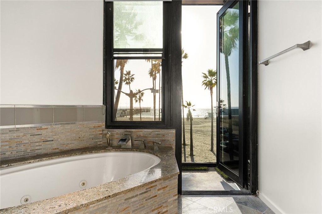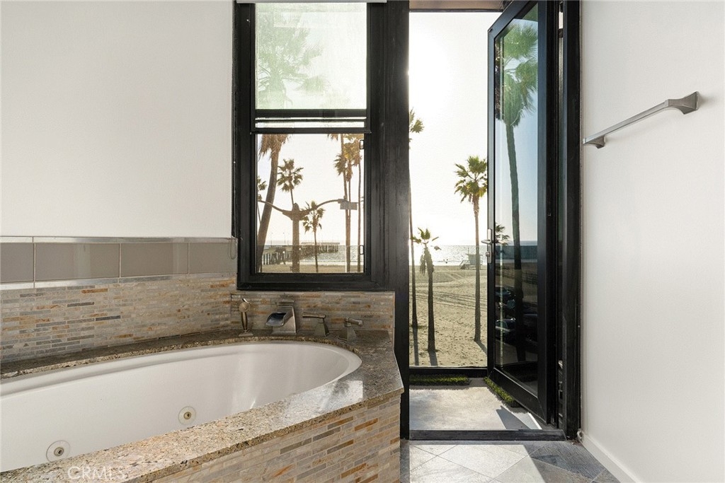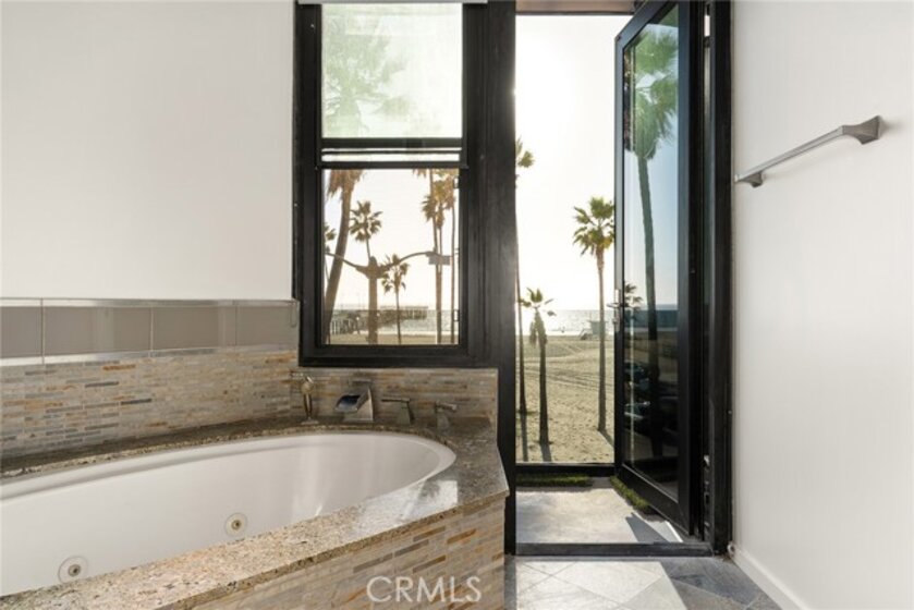 Wake up to the breathtaking views of the Pacific Ocean from the Santa Monica Mountains all the way to the Marina Coast! Oceanfront townhouse in the most desirable part of Venice Beach! This beautifully modern built multi-level townhouse on the beach is the ideal home for those seeking a respite from the complications of day-to-day life in Los Angeles, yet easily accessible from the rest of the city. Large living room with views of the ocean and adjacent kitchen equipped with built-in appliances, such as Miele coffee maker, microwave oven, stove/oven combo and multiple wine coolers which create a welcoming space for you and your guests. White Italian marble floors in the living room, guest bedroom and kitchen with a large balcony facing the ocean on the first floor and the second floor consists of the beach facing master bedroom/bathroom with its own oceanfront balcony along with a 3rd bedroom with side views of the beach. Master bathroom is large a hot tub and steam bath facing the ocean. There are magnificent views of the beach from every corner of this beautifully designed townhouse. Shared roof deck on the top floor provides 360 degree views of the ocean and city. Unit is located in a two unit complex and has exclusive access to one garage parking space and a shared guest parking space. Laundry facilities are located on the first floor next to the garage.