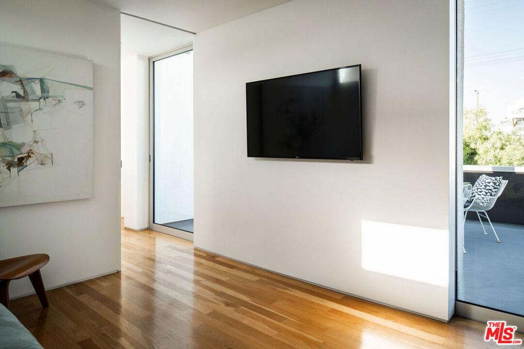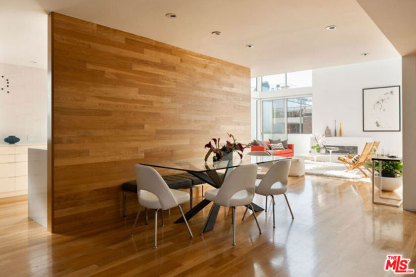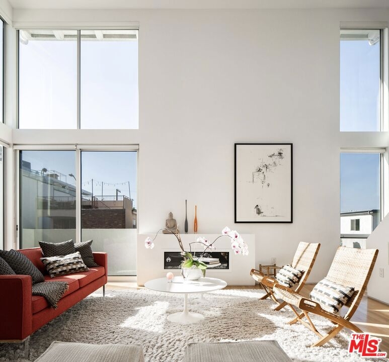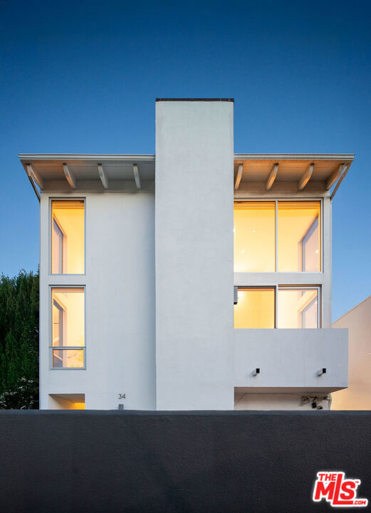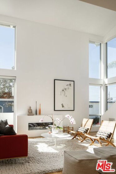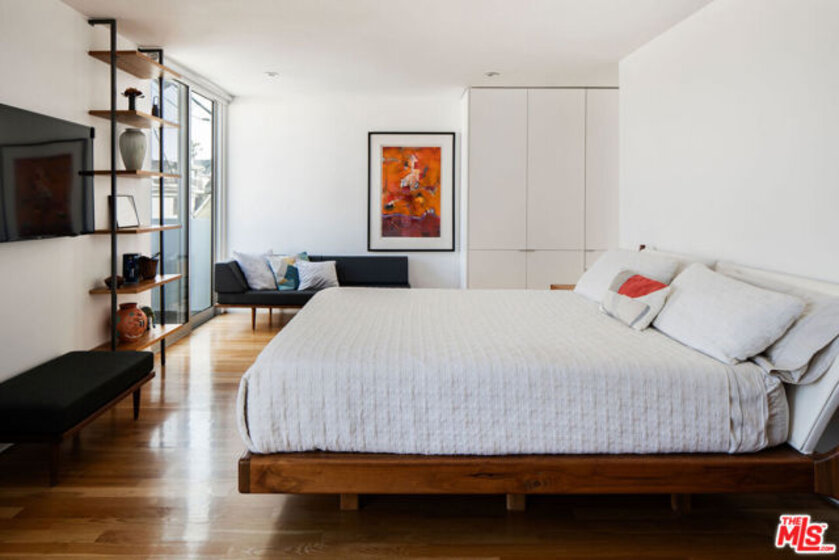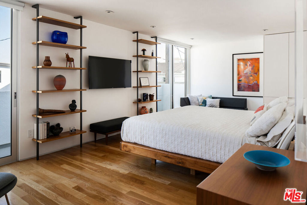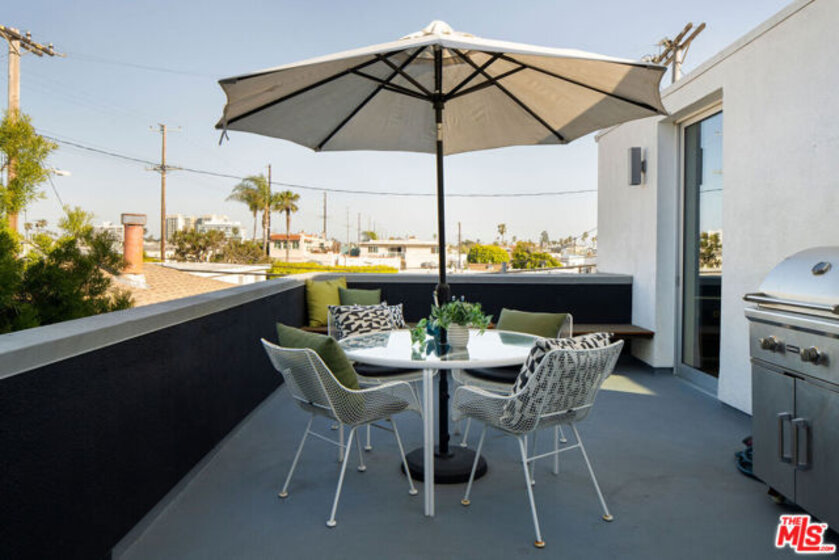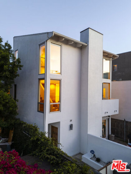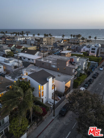 Designed by noted architect Alex Meconi, this architectural penthouse offers a level of privacy, scale, and presence rarely found this close to the beach. Occupying the top floor of a two-residence building with no common walls to the unit below, the home lives with the feel of a standalone residence. Tucked moments from the Venice Canal Historic District and less than a block from the ocean, it remains quietly removed while at the center of Venice's most desirable lifestyle. Reimagined in 2017, the approximately 1,960-square-foot home is defined by soaring volumes, abundant natural light, and seamless indoor-outdoor flow. Dramatic double-height Arcadia glass walls flood the interiors throughout the day, while expansive front and rear terraces, along with a private rooftop retreat, create multiple spaces for entertaining or relaxing. The main living area is both refined and functional, anchored by a linear fireplace and enhanced by integrated sound, custom millwork, and a built-in bar that transitions effortlessly from day to evening. The kitchen pairs precision with understated luxury, featuring Sub-Zero refrigeration, Bosch appliances, quartz surfaces, and custom cabinetry designed for both form and function. The primary suite serves as a true private sanctuary, generous in scale, with layered seating areas, a custom walk-in closet, and a spa-inspired bath. Above, a secondary en-suite opens directly to the rooftop terrace, complete with BBQ, outdoor audio, and panoramic city-light views. Additional features include oak hardwood floors, Lutron lighting, whole-home water filtration, upgraded HVAC, copper plumbing, integrated security, and EV-ready three-car parking, an exceptional offering this close to the beach. Moments from Abbot Kinney, Main Street, and the coastline, the home offers immediate access to Venice's best dining, caffes, and boutiques while maintaining a rare sense of privacy and separation.