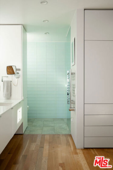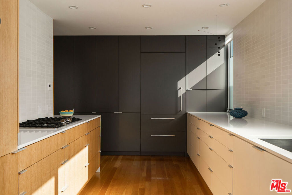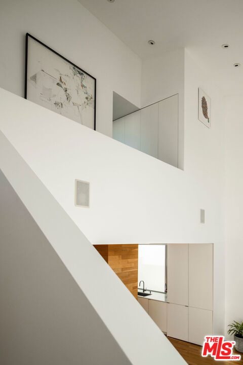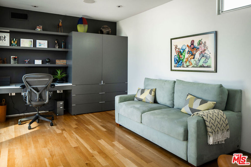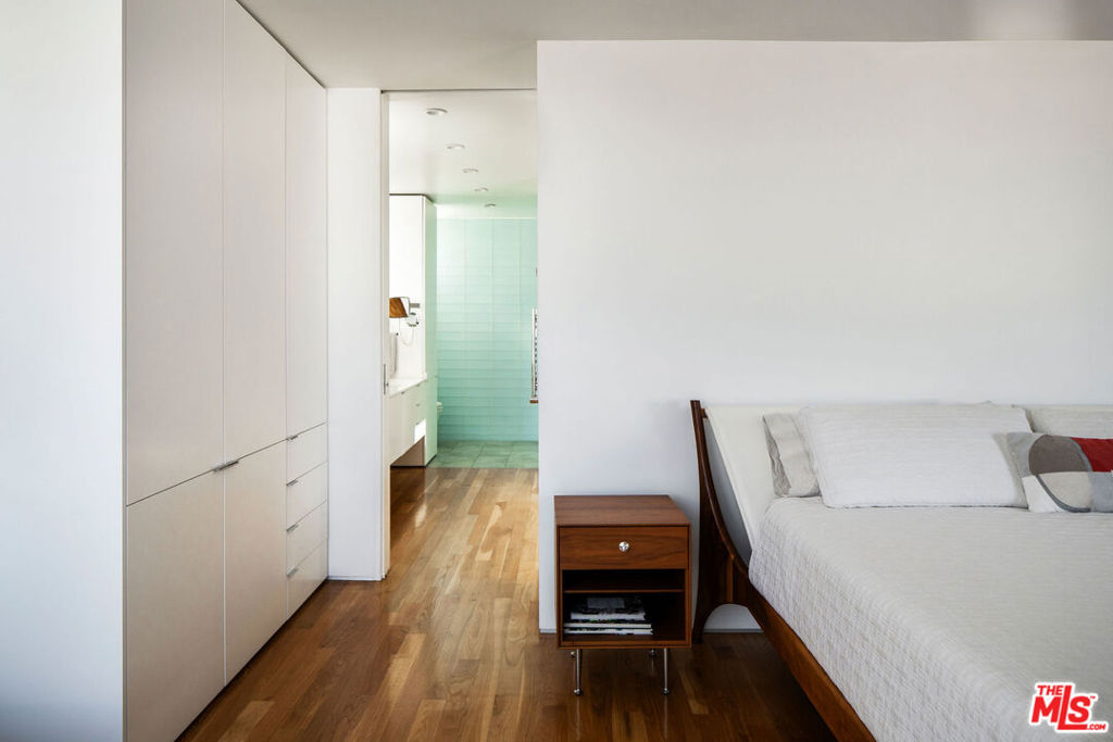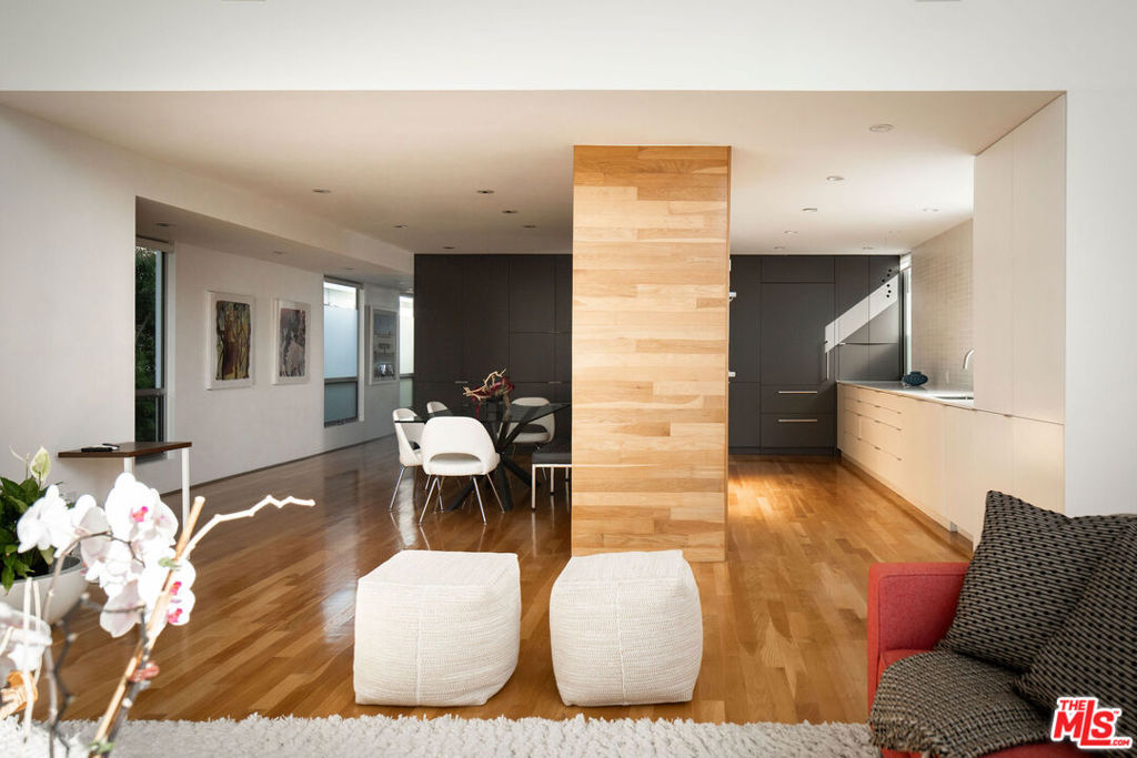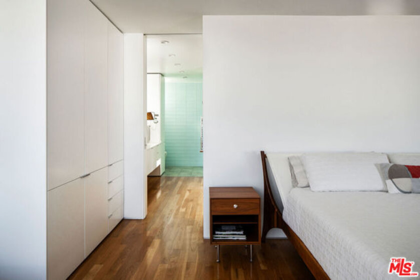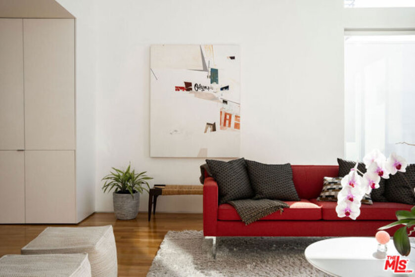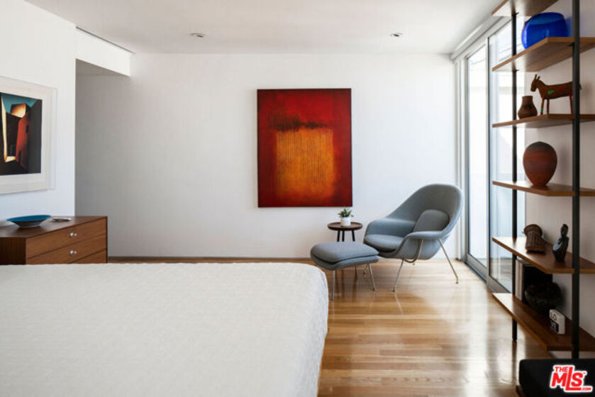 Designed by noted architect Alex Meconi, this architectural penthouse offers a level of privacy, scale, and presence rarely found this close to the beach. Occupying the top floor of a two-residence building with no common walls to the unit below, the home lives with the feel of a standalone residence. Tucked moments from the Venice Canal Historic District and less than a block from the ocean, it remains quietly removed while at the center of Venice's most desirable lifestyle. Reimagined in 2017, the approximately 1,960-square-foot home is defined by soaring volumes, abundant natural light, and seamless indoor-outdoor flow. Dramatic double-height Arcadia glass walls flood the interiors throughout the day, while expansive front and rear terraces, along with a private rooftop retreat, create multiple spaces for entertaining or relaxing. The main living area is both refined and functional, anchored by a linear fireplace and enhanced by integrated sound, custom millwork, and a built-in bar that transitions effortlessly from day to evening. The kitchen pairs precision with understated luxury, featuring Sub-Zero refrigeration, Bosch appliances, quartz surfaces, and custom cabinetry designed for both form and function. The primary suite serves as a true private sanctuary, generous in scale, with layered seating areas, a custom walk-in closet, and a spa-inspired bath. Above, a secondary en-suite opens directly to the rooftop terrace, complete with BBQ, outdoor audio, and panoramic city-light views. Additional features include oak hardwood floors, Lutron lighting, whole-home water filtration, upgraded HVAC, copper plumbing, integrated security, and EV-ready three-car parking, an exceptional offering this close to the beach. Moments from Abbot Kinney, Main Street, and the coastline, the home offers immediate access to Venice's best dining, caffes, and boutiques while maintaining a rare sense of privacy and separation.