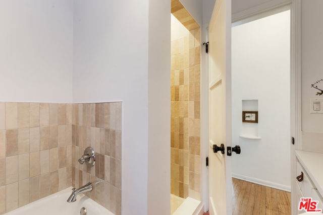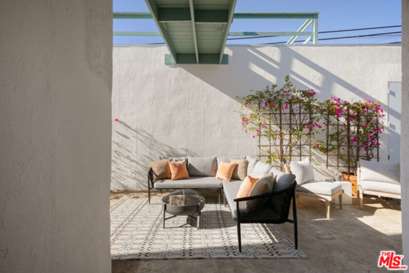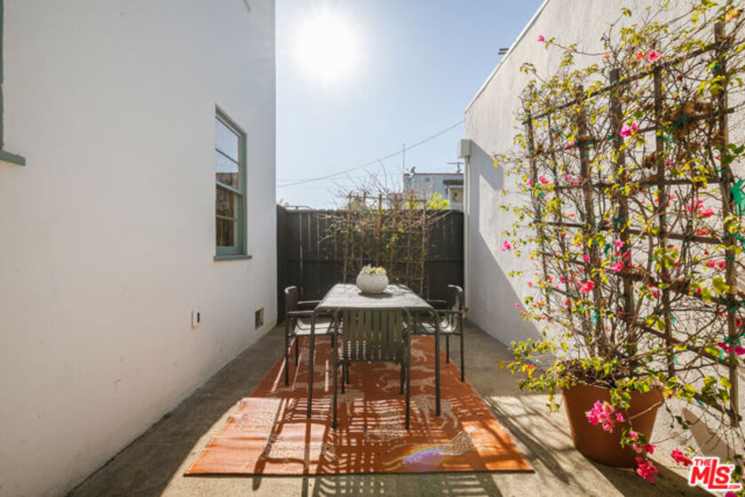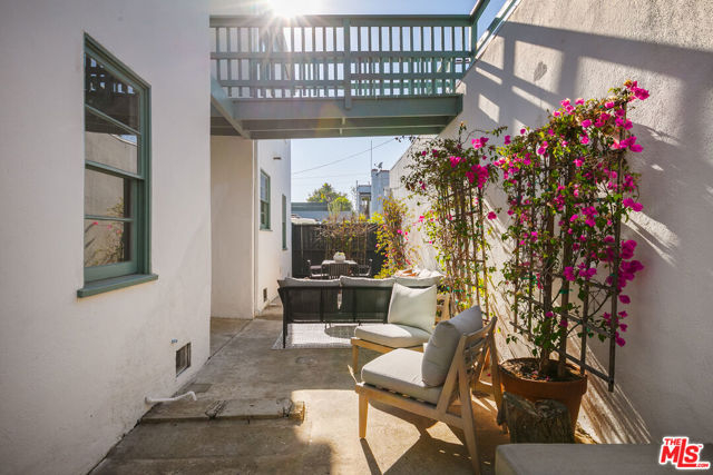 Welcome to Chateau des Roses, a designated Los Angeles Historic-Cultural Monument and designed by prolific architect Max C. Drebin. Celebrated for its corbeled turrets, mansard roof, decorative detailing, and cultural significance, this Venice landmark offers a once-in-a-lifetime opportunity at the corner of Rose & Rennie. This lower 2-bedroom, 2-bath corner unit is flooded with natural light. The spacious living room flows seamlessly into a full dining area, while original hardwood floors add timeless character throughout. The bright kitchen blends historic charm with modern convenience, featuring stainless steel appliances and open shelving. Two generously sized bedrooms, two bathrooms, and updated systems including new HVAC, new roof, and modernized plumbing and electrical ensure comfort and peace of mind. In unit washer and dryer, ample closet space, direct entry to a private garage, and an oversized private patio designed for entertaining complete the offering. This space is perfect for hosting friends and enjoying Venice sunsets. Situated in the heart of this cultural hub, Flake, Wabi Sushi, Vin on Rose, Day Glow, and Cinque Terre are just outside your door, with the beach only moments away. Combining historic charm, modern livability, and unparalleled outdoor entertaining, this is an opportunity not to be missed.
