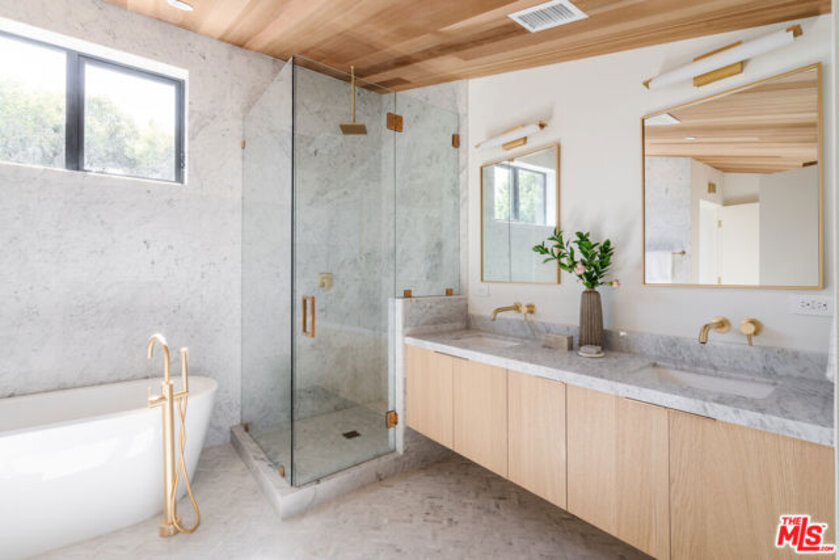 Tucked along one of Venice's most dynamic streets, this newly constructed architectural townhome captures the essence of refined coastal living where ocean air, inspired design, and everyday walkability shape the rhythm of daily life. Just minutes from the beach, Abbot Kinney, Erewhon Market, and Whole Foods Market, mornings begin with coffee runs and beach walks, while evenings unfold among Venice's best dining, shopping, and sunsets. Designed by award-winning architect Robert Thibodeau, the home spans three light-filled levels with Scandinavian-influenced interiors that feel both calm and elevated. White oak floors, warm cedar siding, matte black accents, and bronze fixtures create a soft, modern palette throughout. A dramatic living space with soaring 15-foot ceilings flows seamlessly into the dining area and chef's kitchen, where blonde wood cabinetry, Caesarstone countertops, and top-tier appliances invite effortless entertaining. The primary suite occupies its own private level, offering dual closets and a spa-like Carrara marble bath with soaking tub and rainfall shower - an ideal retreat at day's end. Three additional bedrooms and baths provide flexibility for guests or work-from-home living. Above it all, the rooftop deck with built-in firepit sets the scene for golden-hour gatherings and peaceful nights under the stars. With attached two-car garage parking and close proximity to Google and Oakwood Recreation Center, this is Venice living at its most effortless and inspired.