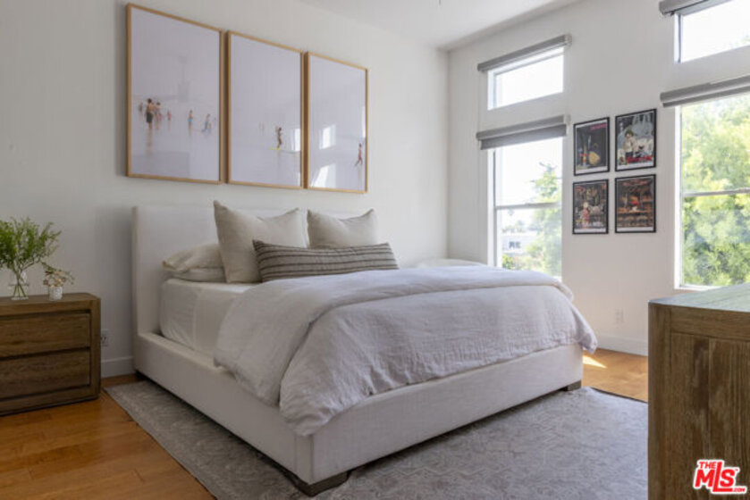 Step into this bright and spacious top floor 3-bedroom, 3-bathroom condo, ideally situated just one block from Rose Avenue in a boutique 3-unit building. This home lives like a single family home, with three generously sized bedrooms and open-concept living. The inviting living space features abundant natural light and flows effortlessly blending a contemporary layout with timeless designer finishes. The kitchen opens into the living and dining area ideal for entertaining, with soaring ceilings, skylights and a brick veneer accent wall. The spacious primary suite features two walk-in closets and a bright, airy bathroom with a freestanding soaking tub. Enjoy the convenience of in-unit laundry, gated parking for two cars, and just a short stroll to vibrant restaurants, boutique shopping, and the beach. Welcome home!
