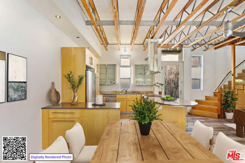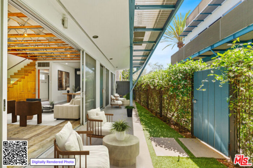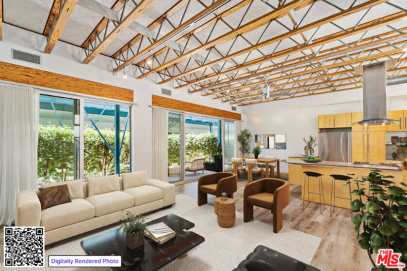 Defined by its striking industrial-modern design and exceptional outdoor living, this reimagined 3-bedroom plus den, 3-bath residence offers a rare opportunity to experience elevated Venice Beach living. With 2,654 of interior space, this home immediately captivates with soaring 9+ foot ceilings, dramatic volume, and sun-drenched interiors framed by beautiful wood beam accents. The open-concept living, dining, and kitchen area flows seamlessly through sliding glass doors to a private, lush balcony, creating a true indoor-outdoor lifestyle. Additional outdoor spaces include an expansive rooftop deck with room for dining and lounging areas. A flexible bedroom off the main living area easily functions as a home office, gym, or creative studio. Designed with both comfort and versatility in mind, the layout features three generously sized bedrooms, including a gracious primary suite with a sitting area, abundant natural light, and a spa-like bathroom with an oversized shower and bench seating. Ideally located just a few blocks from Abbot Kinney Boulevard and favorites like Felix Trattoria, Gjusta, RVR, and Alisa Wine & Friends, and just a 15-minute walk to the iconic Venice Beach Boardwalk, this home places you at the center of the best of Venice living while offering the privacy and space of a true residential retreat. Images shown are of a similar unit and are for illustrative purposes only. Images have been virtually staged.
