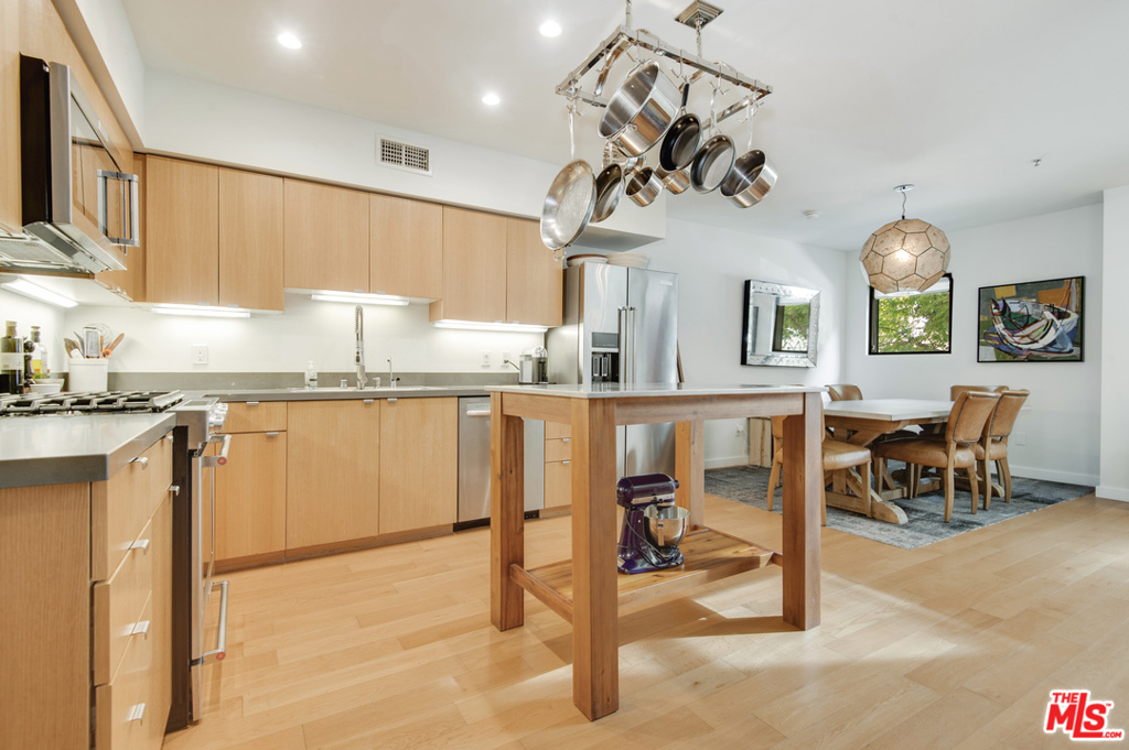 Quintessential Venice living awaits you in this spacious townhome just two blocks from the beach in the coveted Dogtown Station Live/Work Lofts. Inside the unit you will find a double height living room featuring floor to ceiling windows, exposed steel beams, a gas fireplace, and built-in shelves. Directly off of the living room is a private outdoor patio allowing you to soak in the sun and southern California breeze. The chefs kitchen is outfitted with stainless steel appliances and opens to the dining area. Both of the bedrooms are upstairs and have been thoughtfully designed to maximize natural light while also allowing for privacy. The oversized master is complete with a sitting area and a full wall of custom closets. Two bathrooms and a laundry room complete the space. The unit also includes secure garage parking with 2 side-by-side spaces and extra storage. Enjoy luxury living steps to shops and restaurants on Abbot Kinney Blvd and Rose Ave.